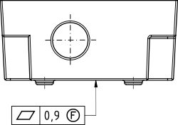 Eintragung von F im Kreis im Toleranzindikator am Bauteil